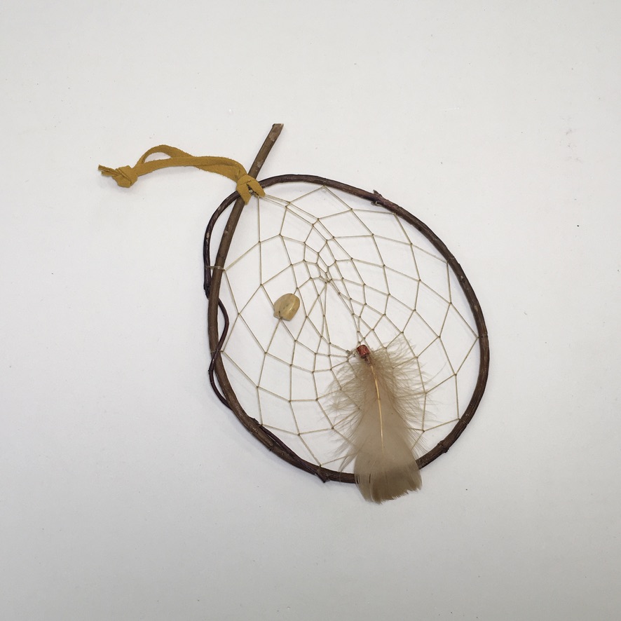 The Dream Catcher is intended to protect the sleeping individual from negative dreams while letting positive dreams through. The Dream Catcher when hung over or near your bed, catches the dreams as they flow by. The positive dreams would slip through the hole in the center of the Dream Catcher, and glide down the feathers to the sleeping person below. The negative dreams would get caught up in the web and disappear with the first rays of Father Sun.