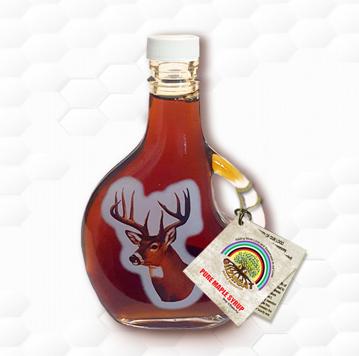 Giizhigat Maple Syrup comes in a beautiful keepsake glass that celebrates life around us – whether it be our brother the winged ones (Blue Jay) or our four-legged brother the Deer – we give thanks to all life around us.